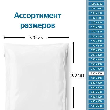 Курьерский пакет размером 300*400 мм при толщине материала 40 мкм без кармана подойдет для упаковки и отправки небольших вещей бытового и промышленного назначения, например: