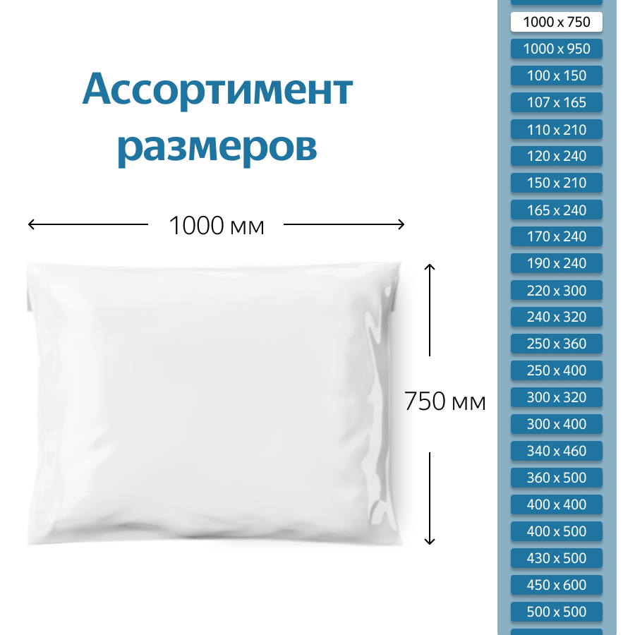 Курьерский пакет размером 1000*750 мм при толщине материала 60 мкм без кармана подойдет для упаковки и отправки небольших вещей бытового и промышленного назначения, например: