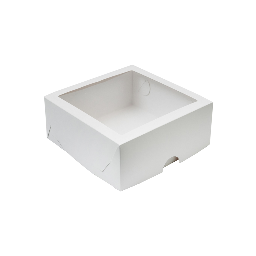 Коробка картонная 250х250х100 мм самосборная с окном, для капкейков (9 шт.), белая