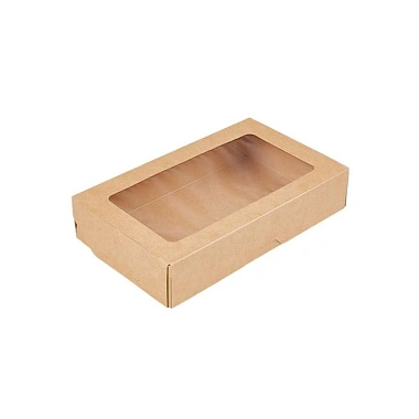 Контейнер бумажный 200х120х40 мм с окном, 1000 мл, цвет крафт