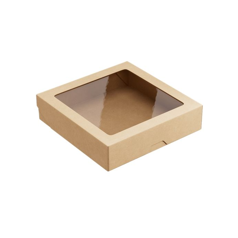 Контейнер бумажный "на вынос" 200х200х48 мм с окном, 1500 мл, цвет крафт