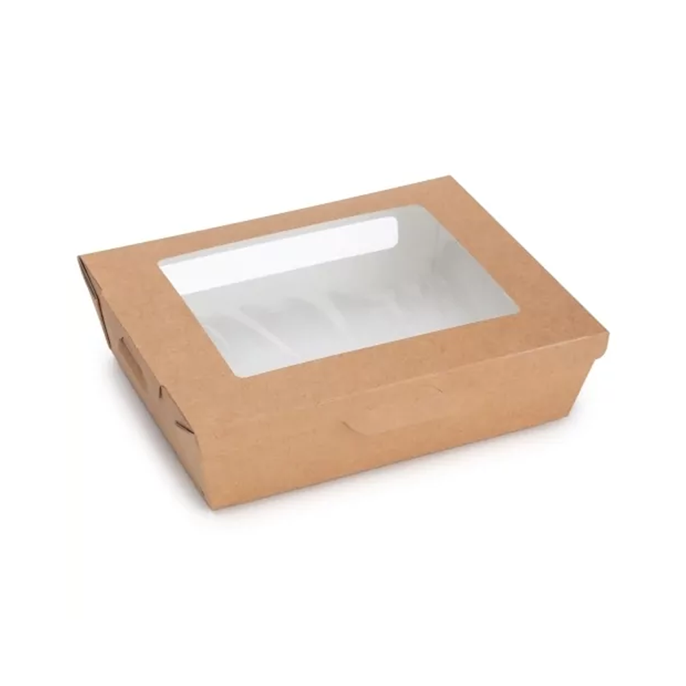 Контейнер бумажный изготовлен из прочной бумаги. Оснащен прозрачным окном. Вместимость контейнера - 1000 мл.