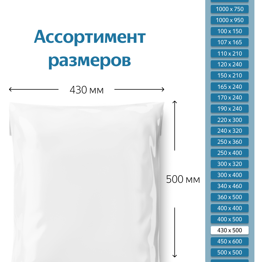 Если вы не нашли в нашем ассортименте пакеты подходящего размера, мы изготовим их по индивидуальным параметрам — любого размера, с клеевым клапаном, с карманом или без него, с логотипом или полноцветной печатью.