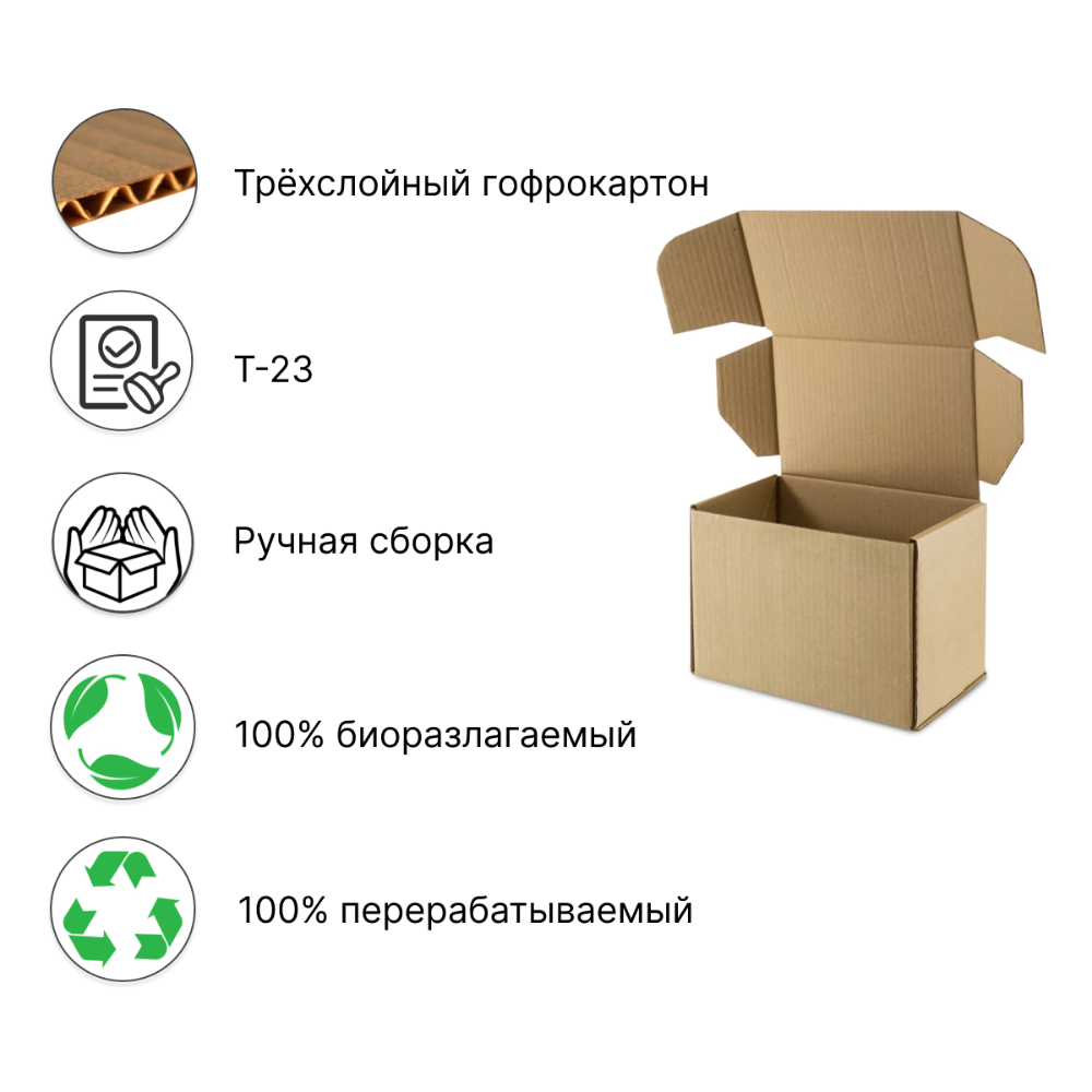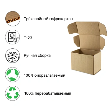Бурая почтовая коробка типа "Г" (№3) Премиум изготовлена из гофрокартона высокого качества. Сам гофрокартон производится из свежей целлюлозы или переплетного картона. Размеры коробки указаны внутренние.