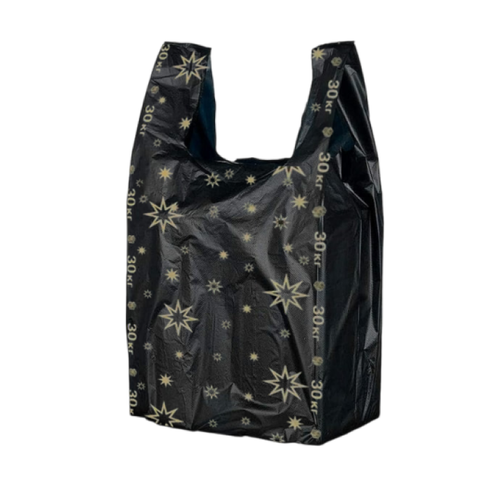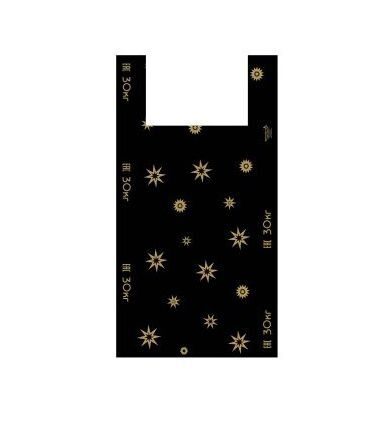 Пакет майка 36+18х60см (15 мкм) (черные со звездами) (50 шт/уп)