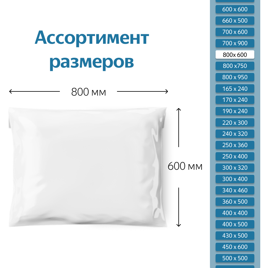 Курьерский пакет размером 800*600 мм при толщине материала 60 мкм без кармана подойдет для упаковки и отправки небольших вещей бытового и промышленного назначения, например: