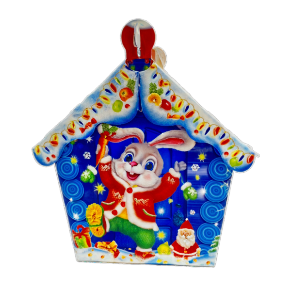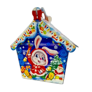 КОРОБКА для новогоднего подарка картонная 170х100х230/275 "Избушка Зайки" на 1.5кг