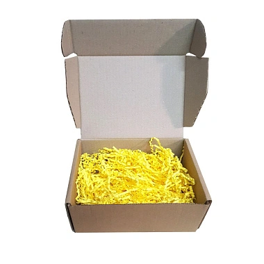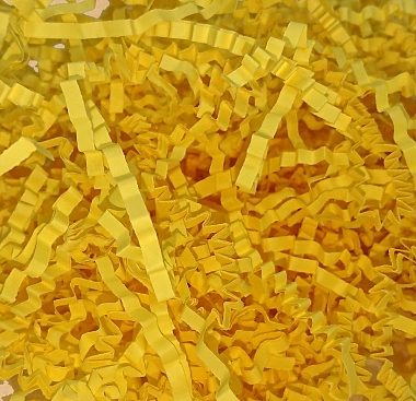 Рифленые полоски («стружки») шириной 4 мм, канареечно-жёлтого цвета, в виде воздушной бумажной подушки, создаст видимость объемного, большого подарка, выделит цветом и выгодно подчеркнет его стиль. Замечательно подойдёт для упаковки посуды, косметики, антиквариата и много другого. Кроме того, наполнитель играет роль дополнительной защиты и позволит уберечь от повреждений хрупкие предметы при транспортировке.