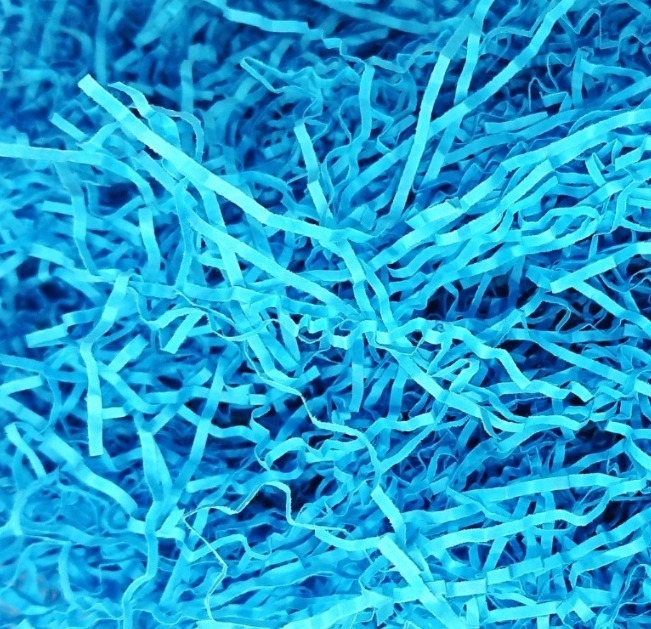 Гофрированные полоски из нарезанной узкими полосками («стружками») тонированной в массе офсетной бумаги шириной 2 мм, светло-синего цвета, как воздушная бумажная подушка, придаст видимость объемного, большого подарка, выделив его цветом, выгодно подчеркнет стиль и завершённый вид. Замечательно подойдёт для упаковки посуды, косметики, антиквариата и много другого, создавая дополнительную защиту от повреждений.