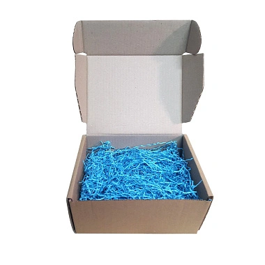 Светло-синего цвета наполнитель из бумаги украсит и сделает нарядным и праздничным не только Вашу подарочную упаковку, но и станет доминирующим элементом декора при дизайнерском оформлении любого помещения. Не большое количество бумажного наполнителя хватит, чтобы любая коробка или корзина с продуктами, напитками или фруктами приобрела презентабельный и эстетический вид.