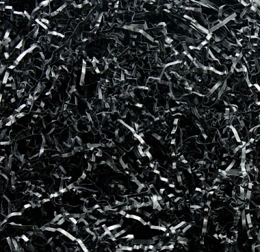 Гофрированные полоски из нарезанной узкими полосками («стружками») тонированной в массе офсетной бумаги шириной 2 мм, черного цвета, как воздушная бумажная подушка, придаст видимость объемного, большого подарка, выделив его цветом, выгодно подчеркнет стиль и завершённый вид. Замечательно подойдёт для упаковки посуды, косметики, антиквариата и много другого, создавая дополнительную защиту от повреждений.