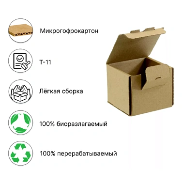 Самосборные картонные коробки 70*70*60 мм (внутренний размер) – универсальная тара для упаковки и транспортировки небольших товаров. Изготовлены из прессованного микрогофрокартона марки Т-11.