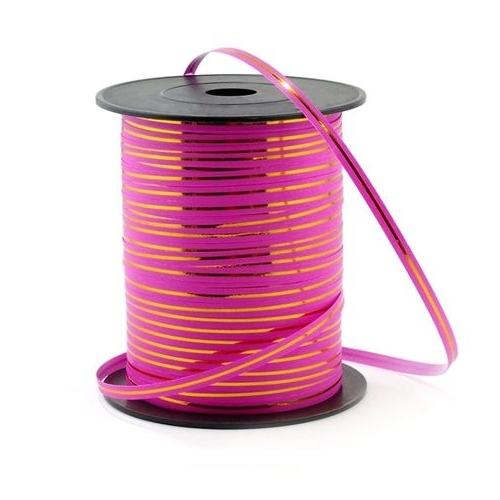 Лента упаковочная 0,5см х 228,5м (Фуксия с золотой полосой)