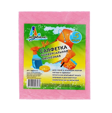 ГлавнаяХозтоварыСалфетки хозяйственныеСалфетка 30х36 см универсальная "Идеал", вискоза (розовая; 5 шт/уп)