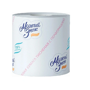 Туалетная бумага «Мягкий знак» – качественная однослойная бумага белого цвета с тиснением в стандартном рулоне. Изготовлена из 100% целлюлозы.
